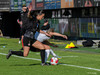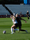 Shaina Ashouri fær boltann við vítapunkt og tekur skotið en Melissa ver frábærlega í marki gestanna.