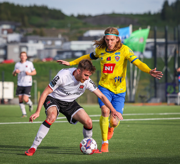 Stingur sér milli tveggja varnarmanna Dundalk og sleppur einn í gegn, klárar virkilega vel! Mjög fagmannlegt hjá þeim færeyska. Varnarleikur Dundalk ekki merkilegur.