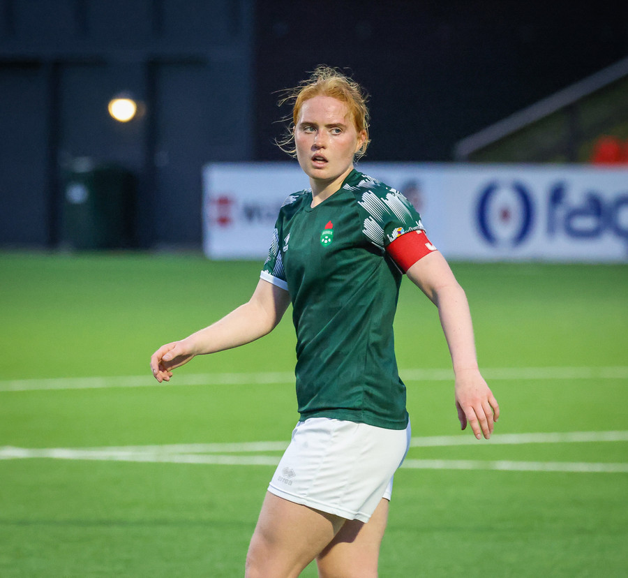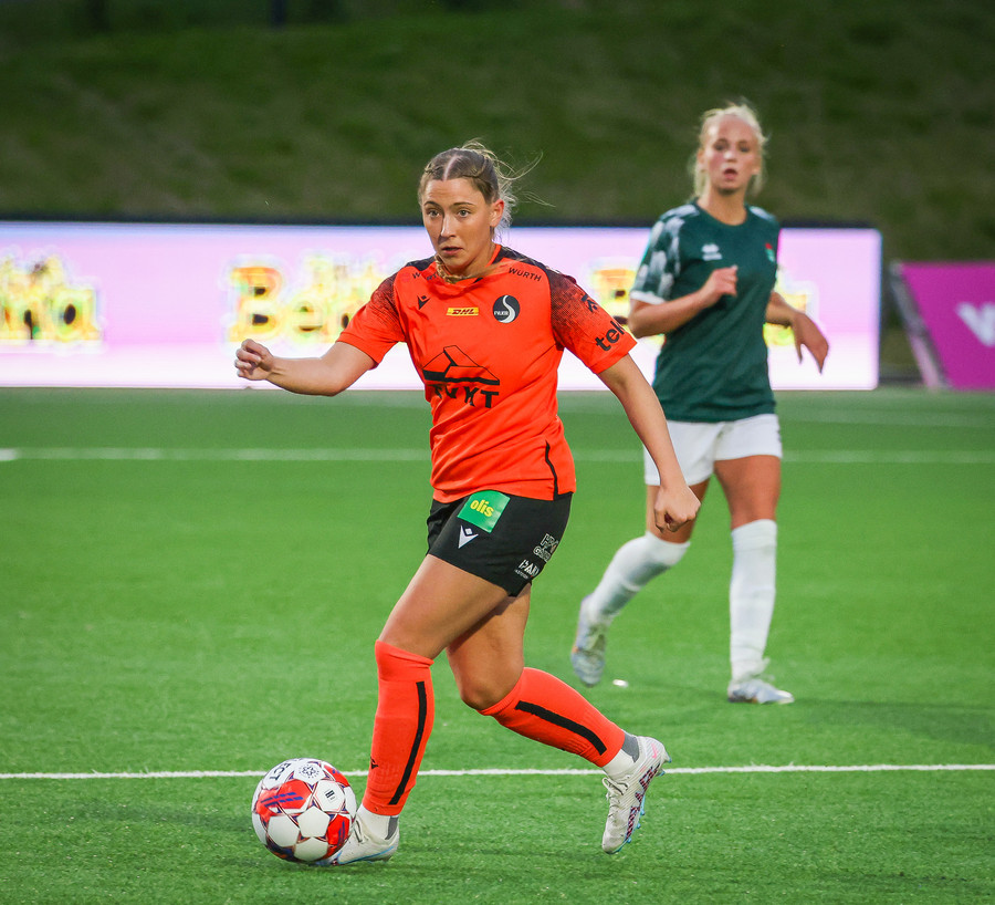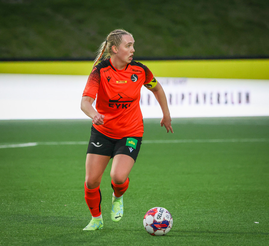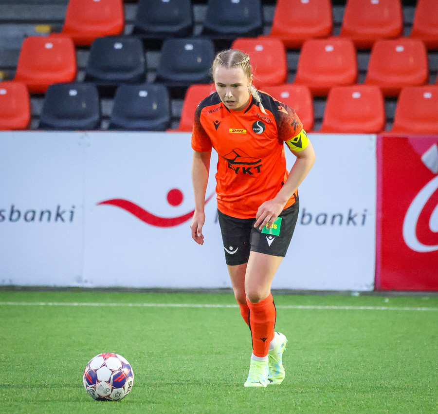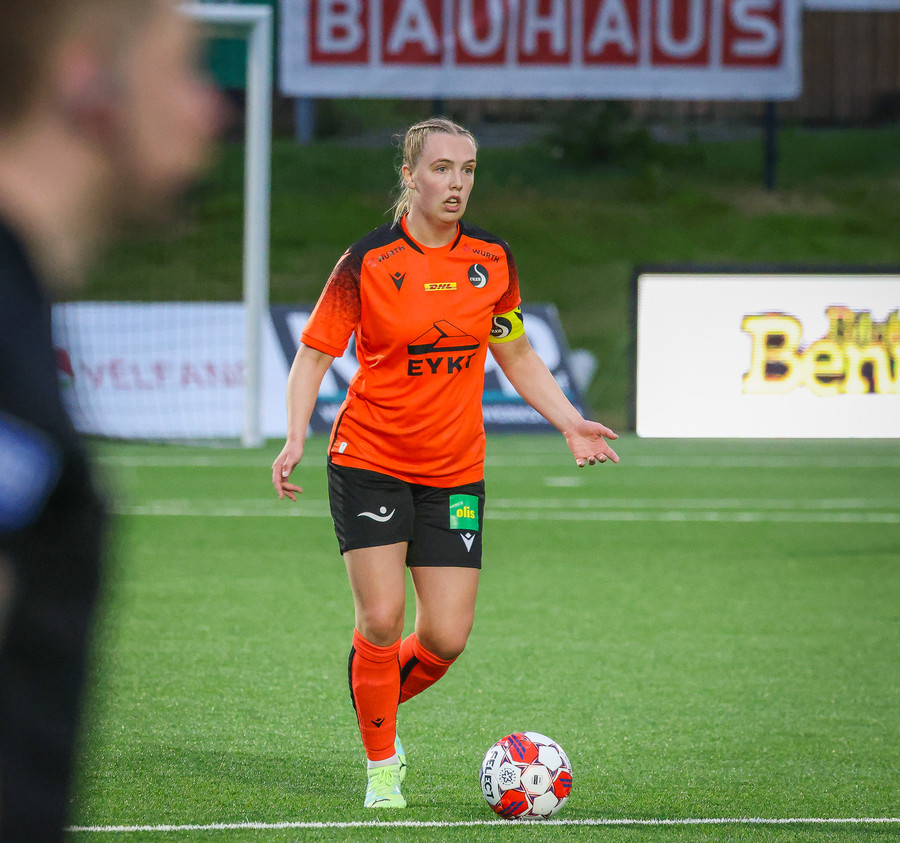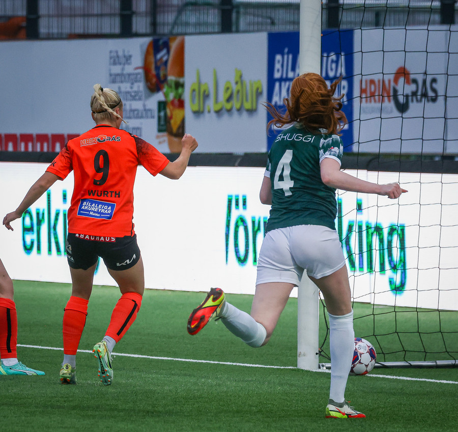 Fyrirliðin kominn með tvennu! Skrítinn varnarleikur sem endar með hreinsun í Evu sem leggur hann síðan fyrir sig og leggur hann framhjá Evu!