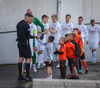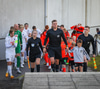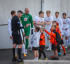 Þetta er farið af stað. ÍBV byrjar með boltann og sækja í átt að Árbæjarlaug.