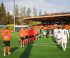 Fylkismenn byrja með boltann og sækja í átt að Árbæjarlaug.