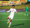 Jón tekur hornspyrnuna sem ratar beint á höfuðið hans Tómasar sem skallar boltinn í netið
