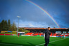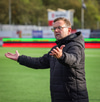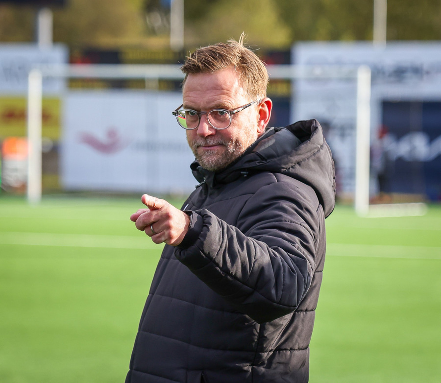 Oliver á fyrirgjöf á Sverri sem skallar boltann hátt upp og Óli grípur boltann auðveldlega í markinu.