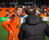 Guy Smit getur ekki haldið leik áfram hér í dag. Höfuðmeiðsli eftir samstuðið áðan.