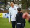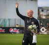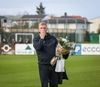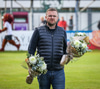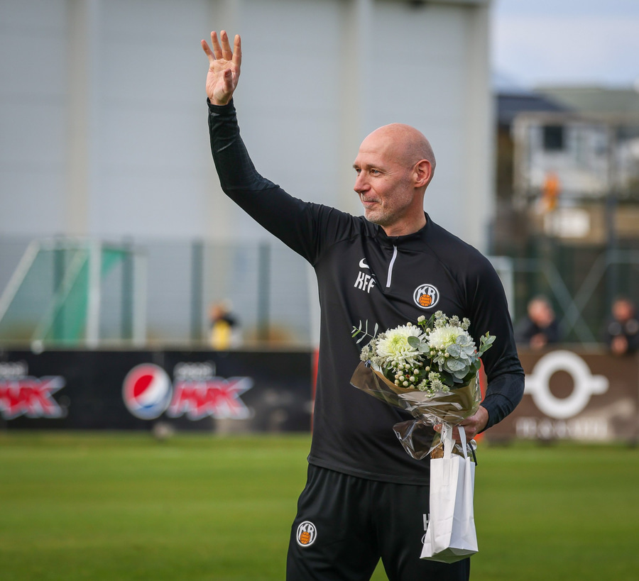 Kristján Finnbogason er líka að hætta sem markvarðarþjálfari liðsins. Hann fær líka blóm. Og þá fær Melkorka Rán Hafliðadóttir, styrktarþjálfari, einnig blóm.