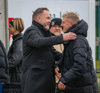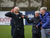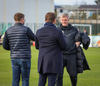 Rúnar Kristinsson, þjálfari KR, fær blóm frá Páli Kristjánssyni, formanni knattspyrnudeildar, og Bjarna Guðjónssyni, framkvæmdastjóra KR.