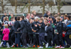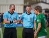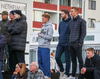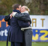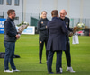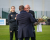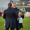 Þrír einstaklingar sem fá blóm fyrir leik