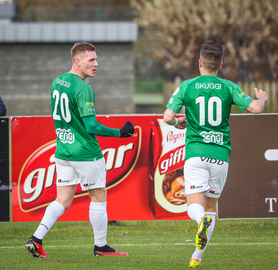 Jason Daði með frábæra sendingu yfir vörnina, Klæmint tekur vel á móti boltanum og klárar vel í gegnum klofið á Aroni í markinu.