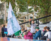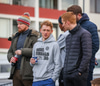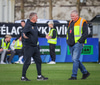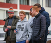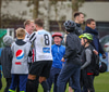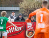 Mikil læti á vellinum allt í einu, báðir stuðningsmannahópar að láta vel í sér heyra.