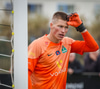 Luke Rae með skot að marki sem fer í stöngina, í Anton Ara og inn.