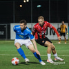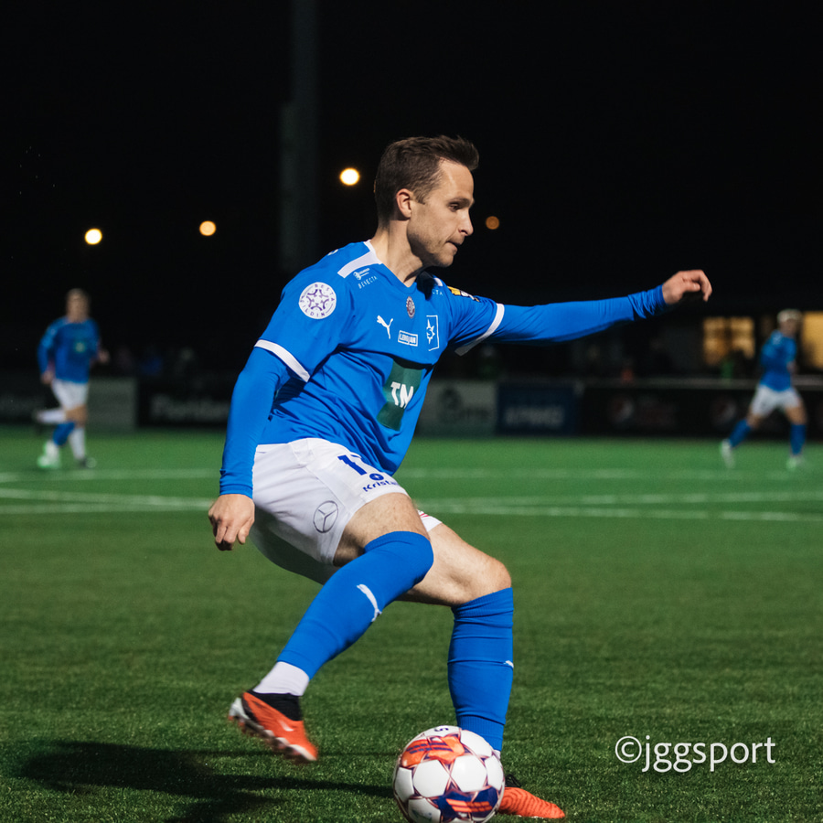 Niko Hansen battar boltann skemmtilega á Erling sem tekur skotið í teig Stjörnunnar en boltinn fer rétt yfir.