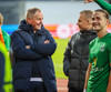 Styttist í þetta! Liðin ganga hér inn á völlinn og tryllta Sambands/Evrópudeildarlagið er í botni, nú styttist í þennan sögulega leik.
