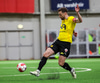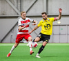 Hinrik Harðarson kassar boltann laglega niður í teignum og nær skotinu en boltinn beint á Arnar í markinu.