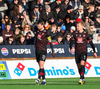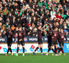 Þá ganga liðin til vallar. Það er löngu búið að fylla stúkuna og vonandi fáum við veisluleik!