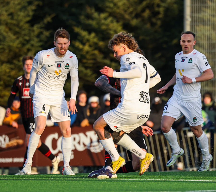Löng sending inn fyrir vörn Víkinga í upphafi leiks sem Benjamin Stokke nær til. Hann fer framhjá Ingvari en sendingin inn fyrir er ekki góð og Gunnar Vatnhamar hreinsar.