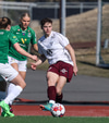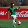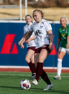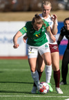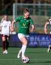 Gwen Mummert með ágætis sendingu inn fyrir en Telma kemur út á móti og handsamar boltann.