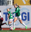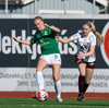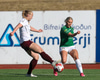 Vigdís Lilja nær næstum til boltans á stórhættulegum stað inn í teignum en Gwen Mummert er á undan og kemur honum frá.