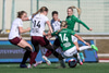 Aldís María fær boltann af miklum krafti í hausinn af stuttu færi. Liggur eftir en vonandi er þetta ekkert alvarlegt.