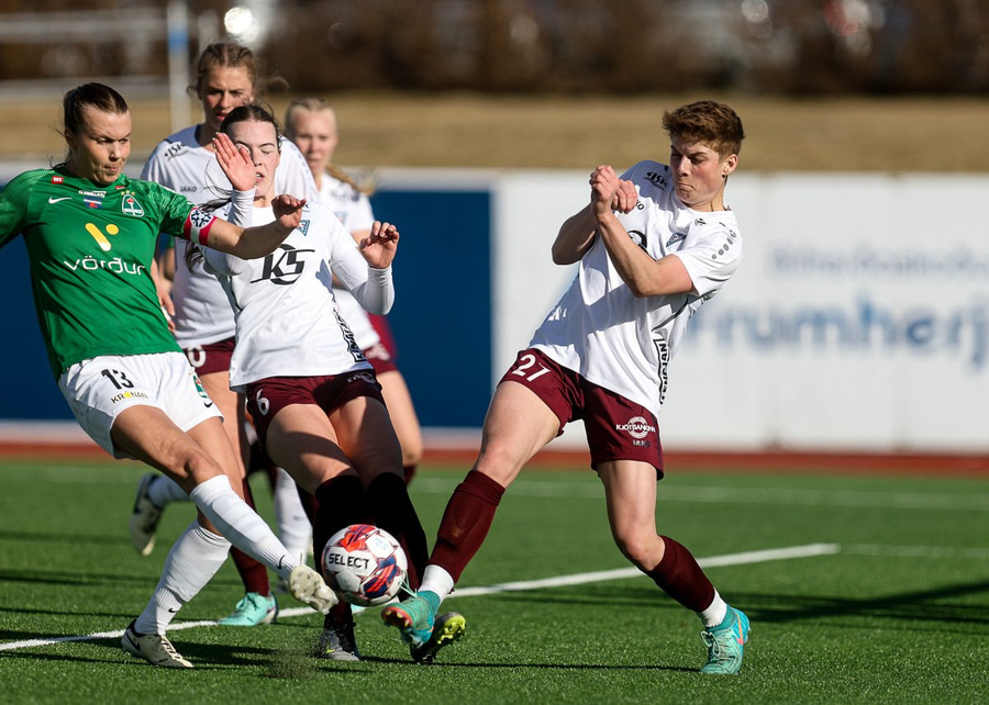 Jordyn Rhodes sendir Hugrúnu í gegn. Hún sleppur ein í gegn en er of lengi að ákveða sig. Telma gerir frábærlega og ver frá henni.