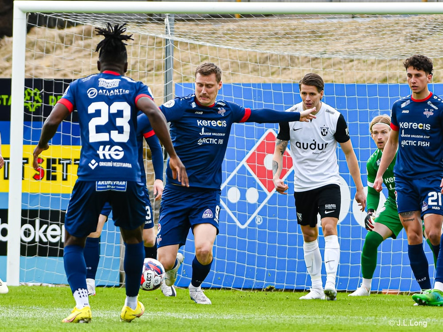 Eiður Aron Sigurbjörnsson varnarmaður Vestra ristarbrotnað í sigri á HK í síðustu umferð og missir af næstu mánuðum.