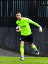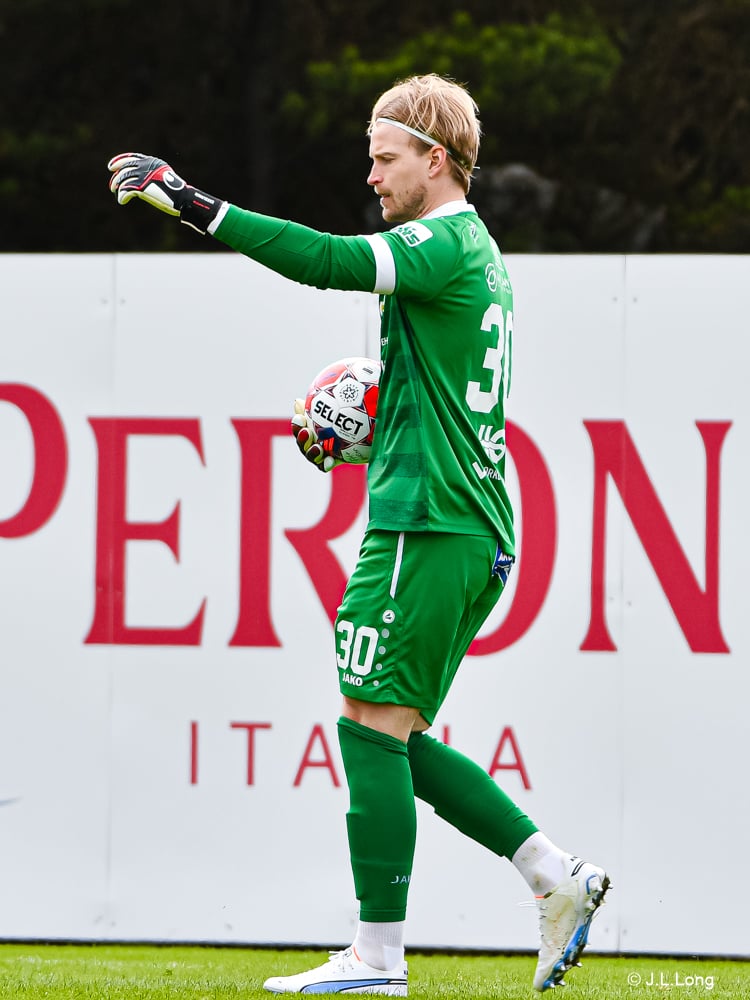 Kjartan með skot beint úr aukaspyrnu en það fer beint í kjöltuna á William í markinu.