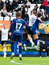 FH-ingar setja boltan fyrir teiginn og William nær ekki að klást við þetta nógu vel. Hann ýtir bara boltanum aftur út í teig þar sem Dusan nær að pota í boltan en yfir markið fer boltinn.