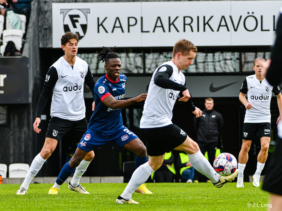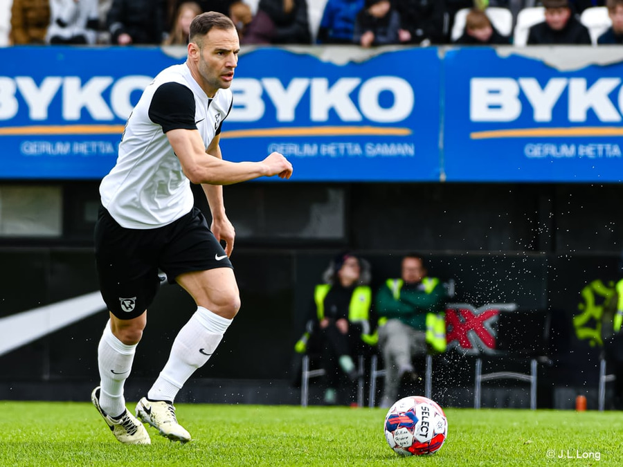 FH sækir upp vinstri kantinn, boltinn er svo færður inn á völl þar sem Gyrðir tekur skotið rétt fyrir utan teig en það fer hátt yfir.