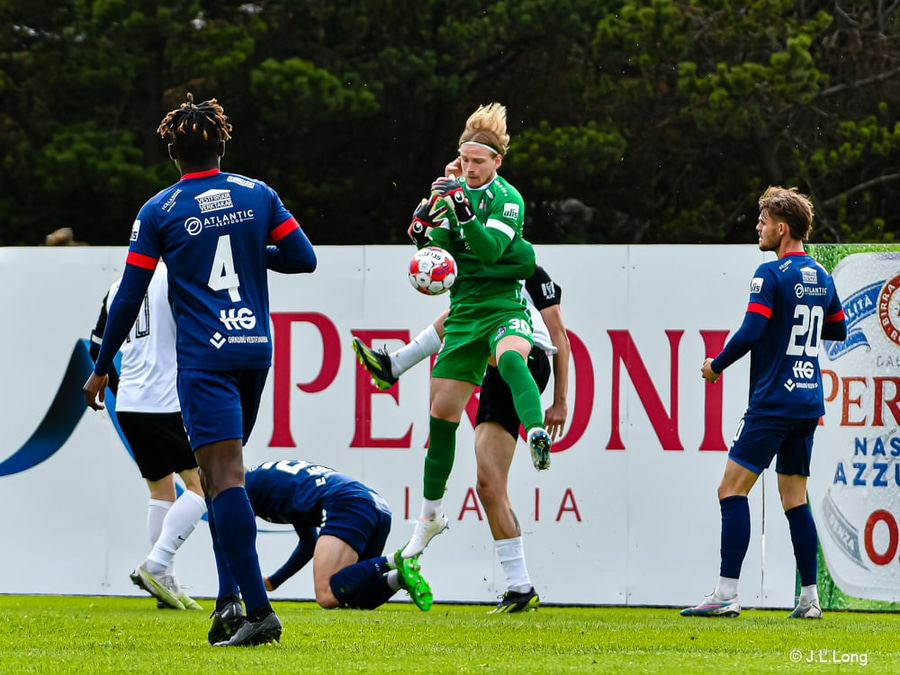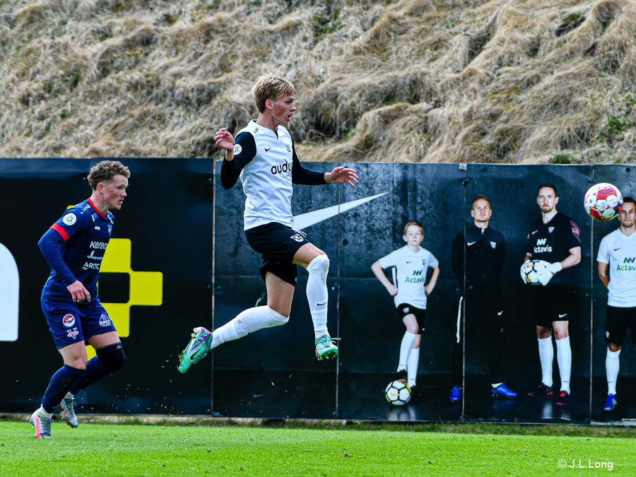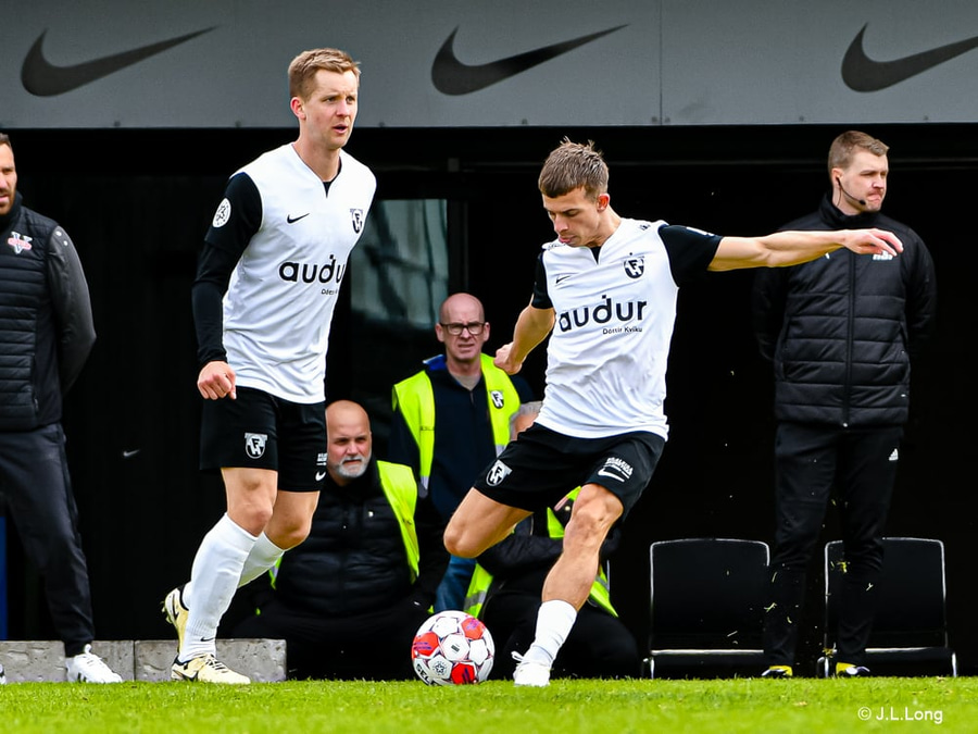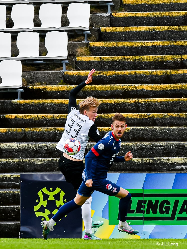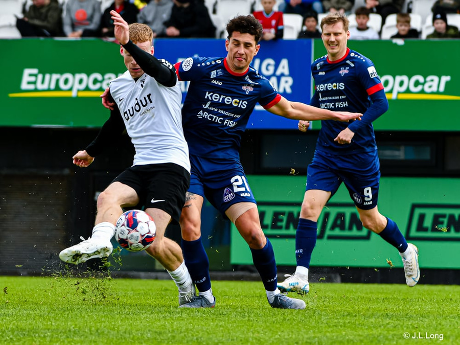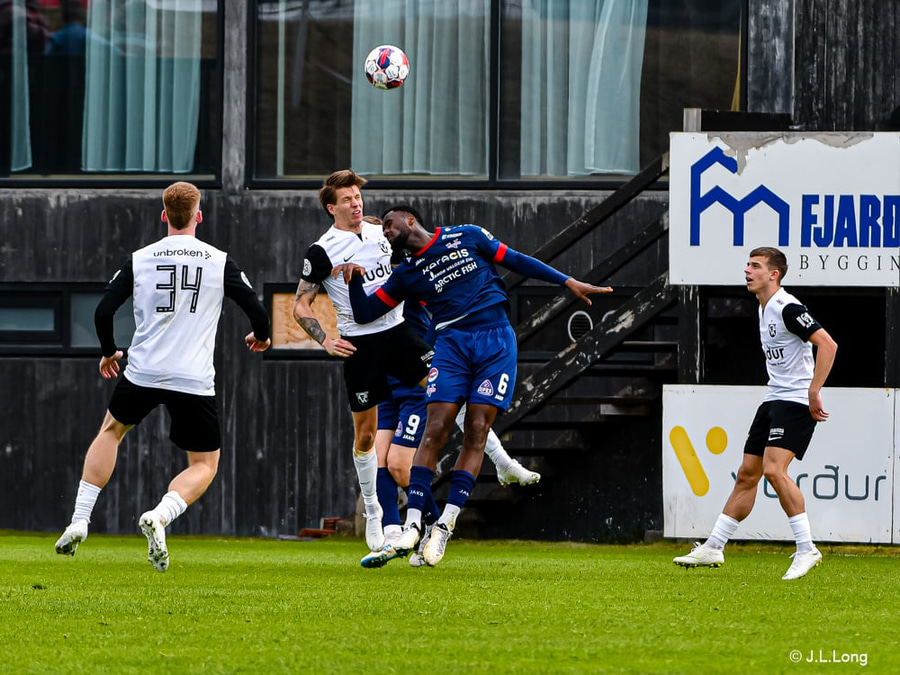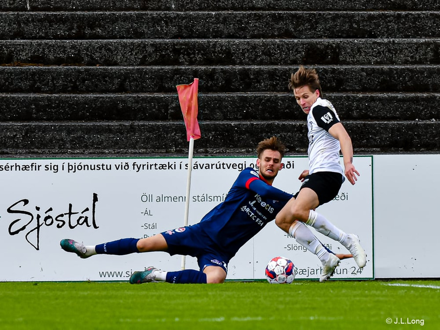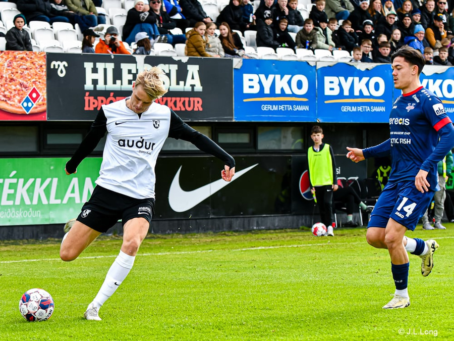 Finnur Orri kemur með langan bolta fram og Ástbjörn er fljótastur að bregðast við. Hann skallar boltan áfram á Sigurð sem tekur skotið viðstöðulaust beint í fjærhornið. Frábært slútt!