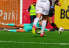 Sigdís með frábæran sprett upp vinstri vænginn, ber boltann upp að endalínu þar sem hún setur boltann fyrir markið sen Shaina millimetrum frá því að ná nægri snertingu á boltann til að setja hann í netið aftur.