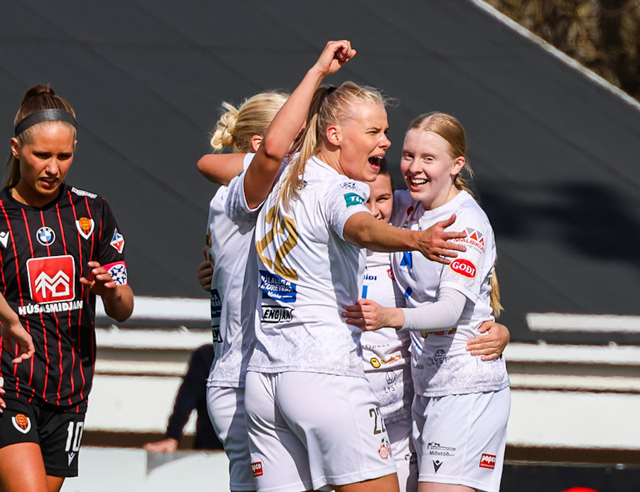Kemst með boltann upp að endamörkum vinstra megin og leggur hann út í teiginn aftur. Birta reynir að kasta sér á boltann en missir af honum. Boltinn fyrir fætur Ísfold sem að bregst ekki bogalistinn og setur boltann í netið frá markteigshorni hægra megin.