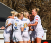 Skalli frá að mér sýnist Ernu að marki eftir hornið en yfir markið fer boltinn.