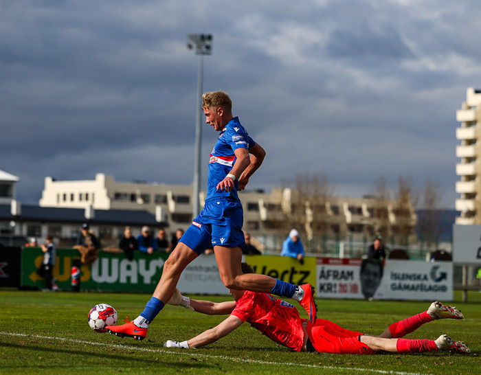 Atli með magnaða fyrirgjöf á Benóný sem á slakan skalla sem Arnar ver. Verður að gera betur þarna.