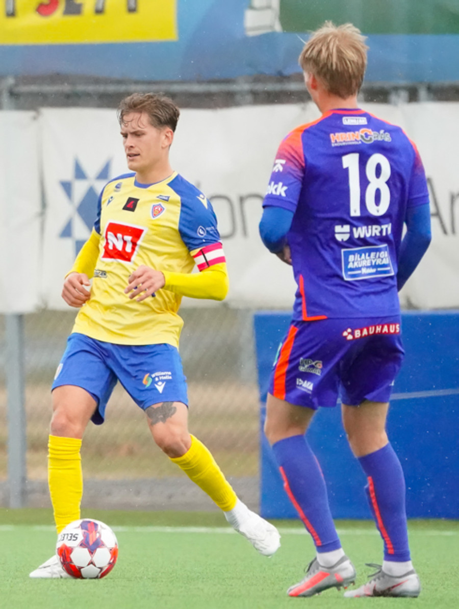 Birkir Eyjólfssson með skot sem fer af Ívari og út af. Matthias Præst nær skoti eftir hornspyrnuna en boltinn fer hátt yfir.
