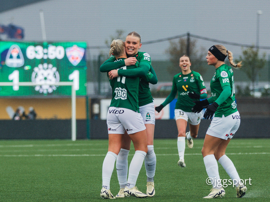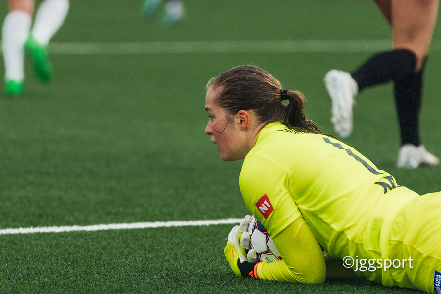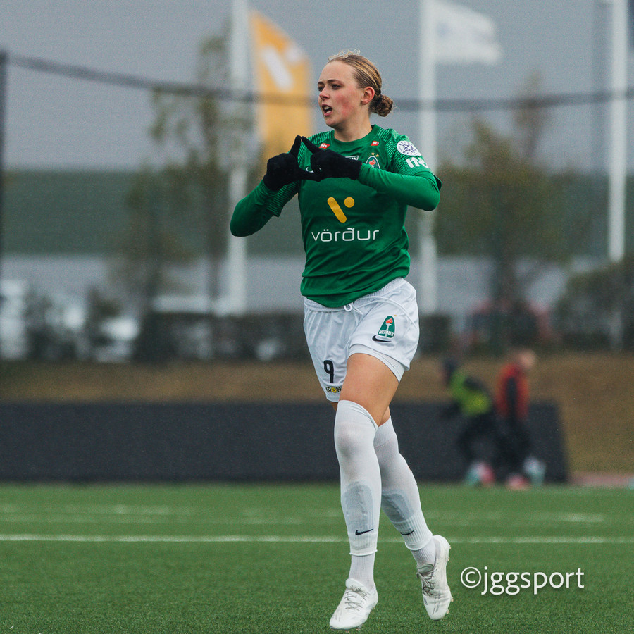 Fær sendingu frá Ollu Siggu og þarf aðeins að hörfa meðan hún snýr af sér varnarmann og hamrar honum svo á markið! Þetta var rosalegt!
