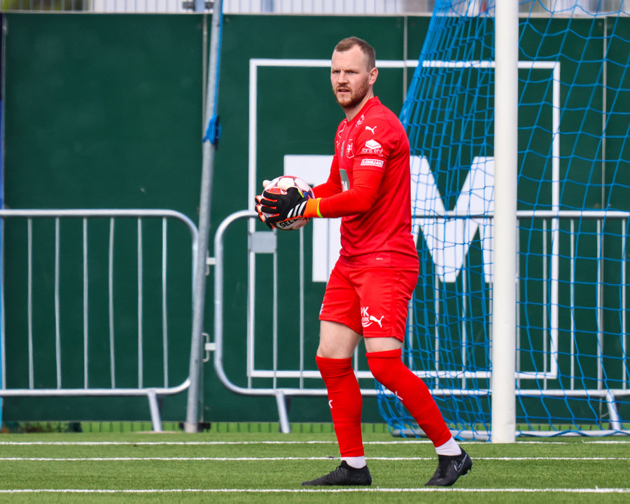 Rodri af öllum mönnum er fremsti maður KA og fær boltan í teignum vinstra megin. Hann setur boltan á Svein sem fer framhjá einum og leggur svo boltan út fyrir Daníel sem er rétt fyrir utan teiginn. Hann lætur vaða en skotið rétt yfir.