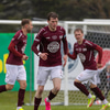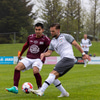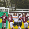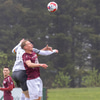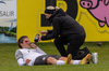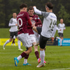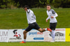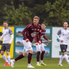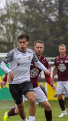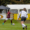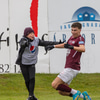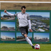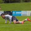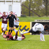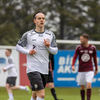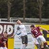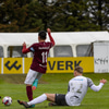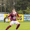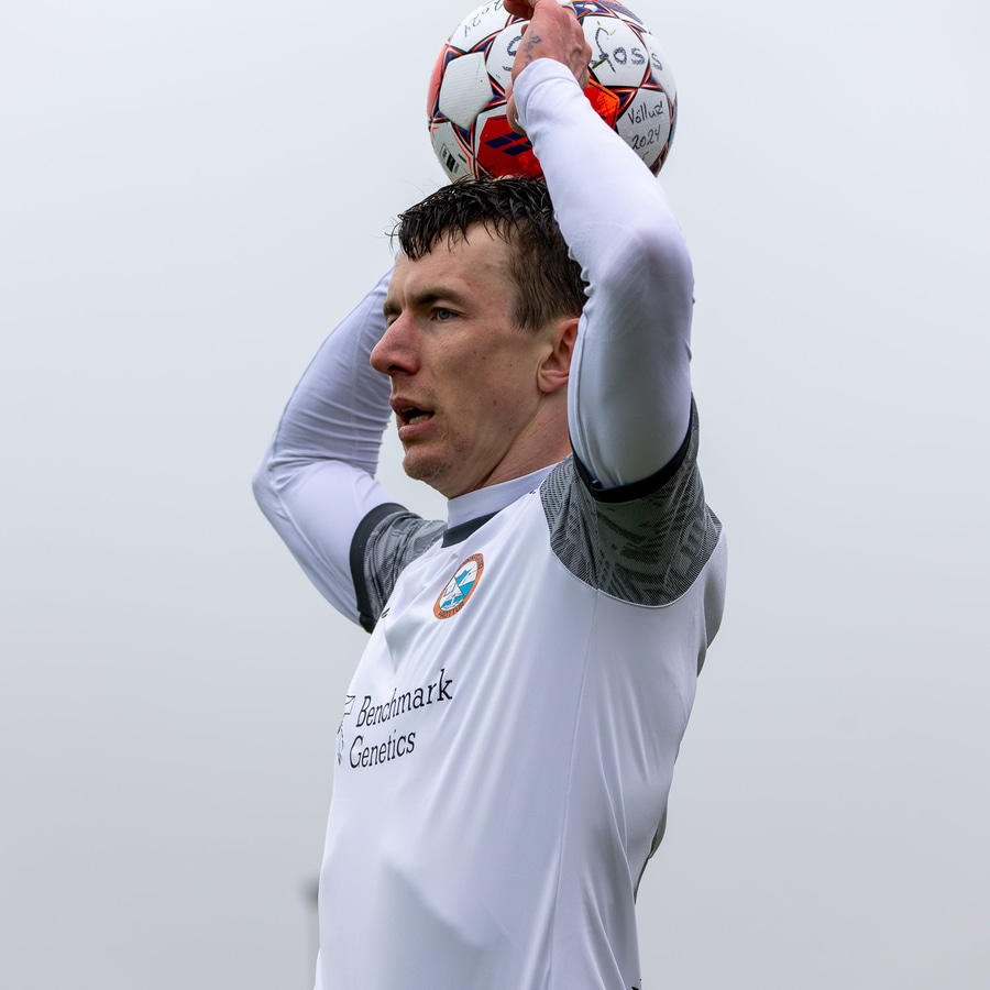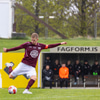 Jóhann á skot langt utan af velli en það er nær því að fara í innkast heldur en á markið