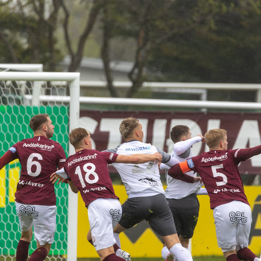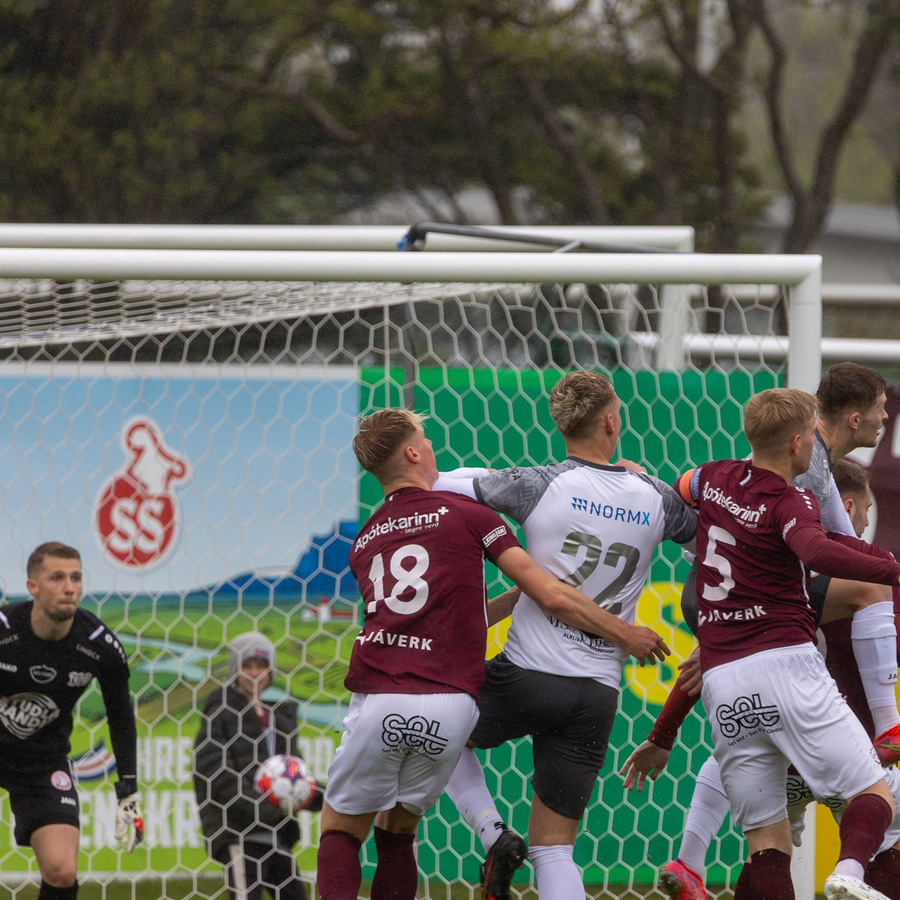 Góð fyrirgjöf sem Benjamín þarf að slá upp og eftir mikið klafs vill boltinn ekki inn og Þróttur hreinsar