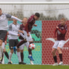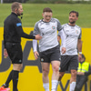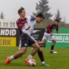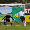 Adrian kemst í gott skotfæri en hallar sér ekki nógu mikið yfir boltann og hann flýgur hátt yfir markið
