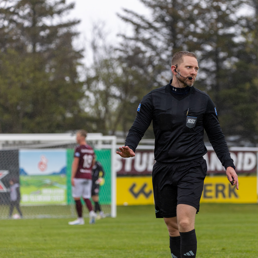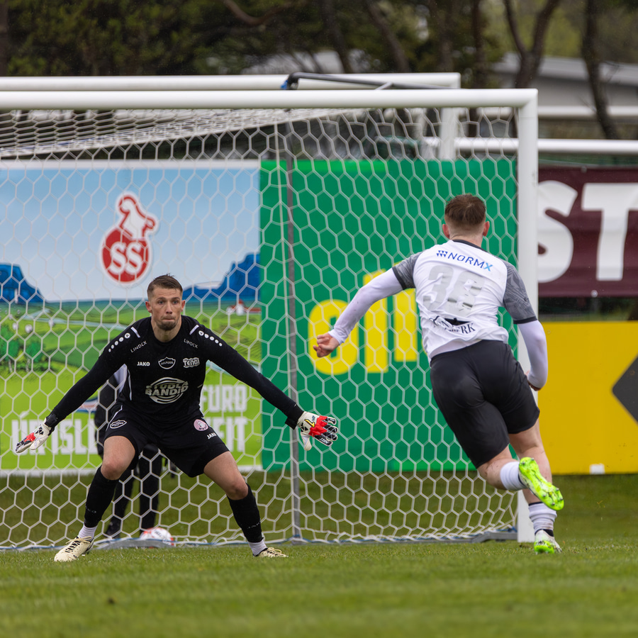 Eysteinn á góða fyrirgjöf sem er beint á höfuð Breka sem á góðann skalla en Benjamín bregst vel við og kemur hendinni í boltann