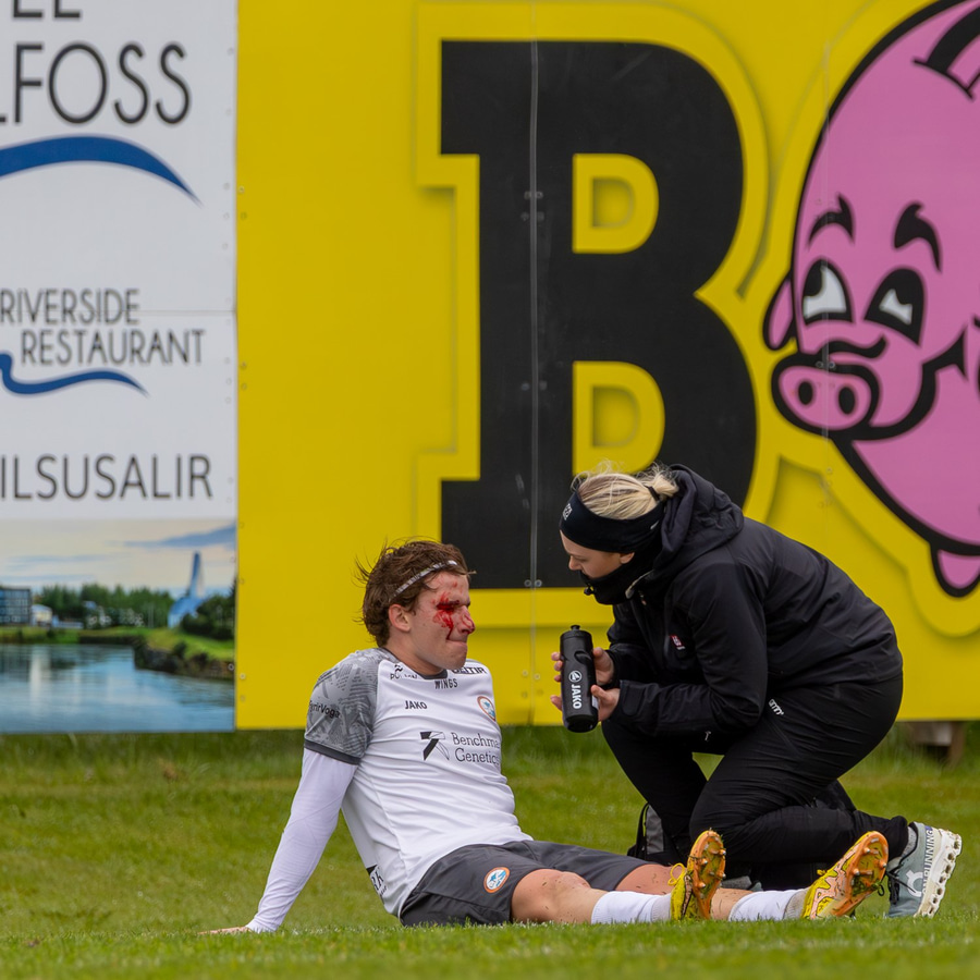 Þrumuskot í stöngina og út frá Jón og Robert var aldreu nálægt boltanum og Selfyssingar heppnir að vera ekki tveimur mörkum undir