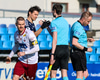 Omar Sowe kennir sér meins og þarf að yfirgefa völlinn. Leiknismenn búnir með sínar skiptingar og klára því leikinn manni færri.