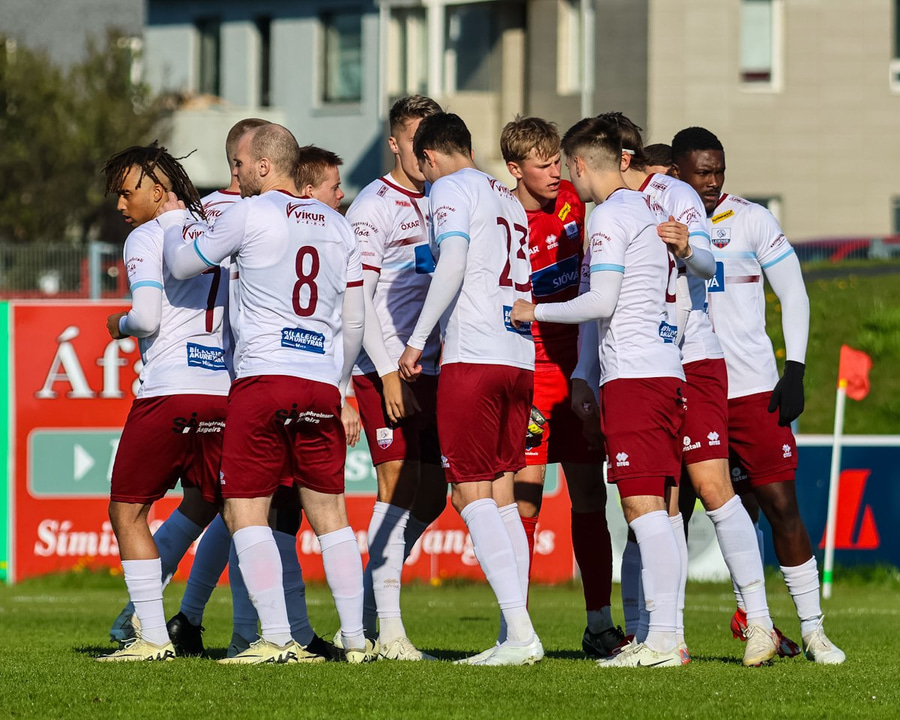 Leiknismenn fá aukaspyrnu á stórhættulegum stað.