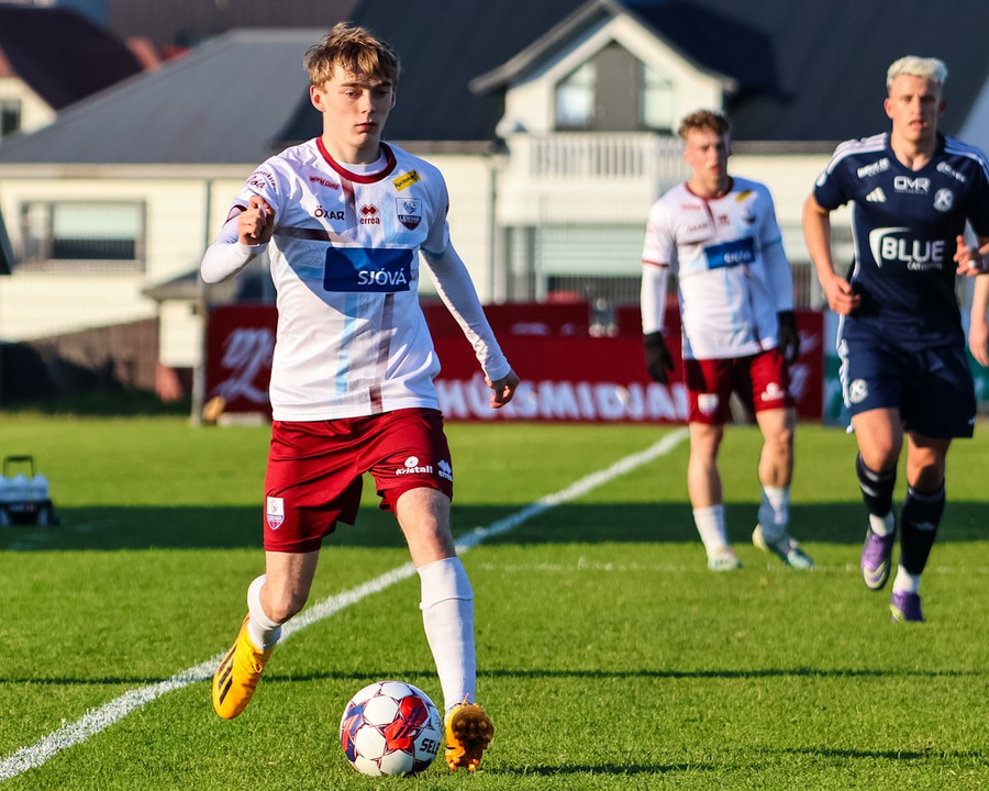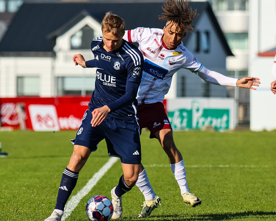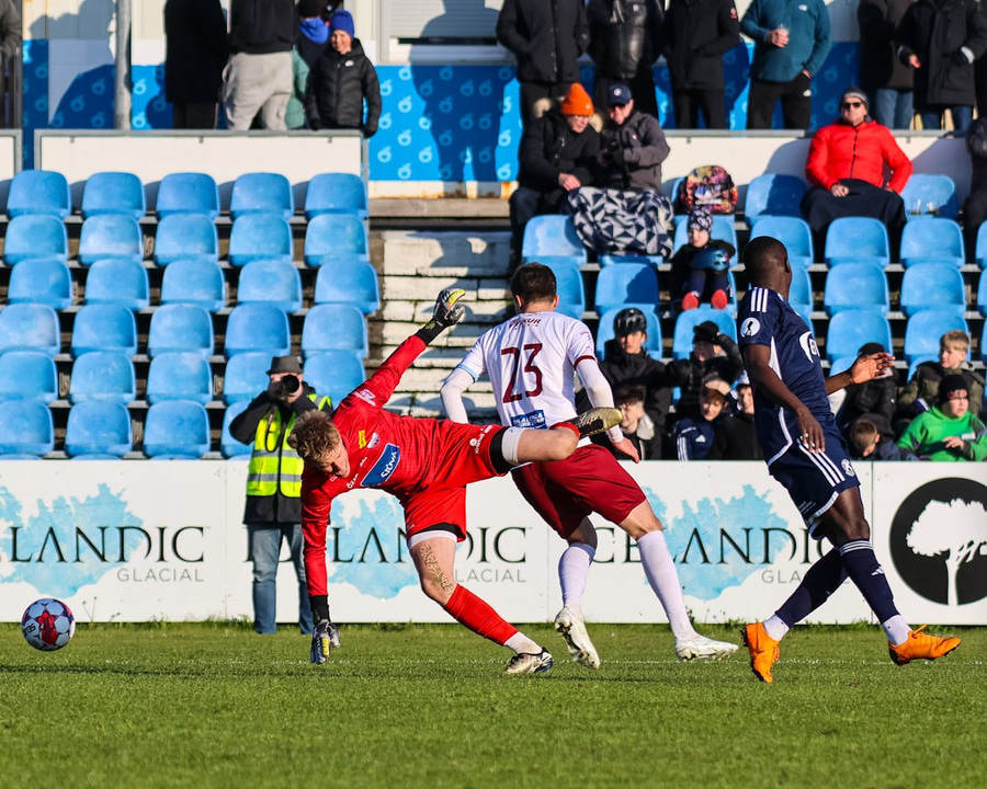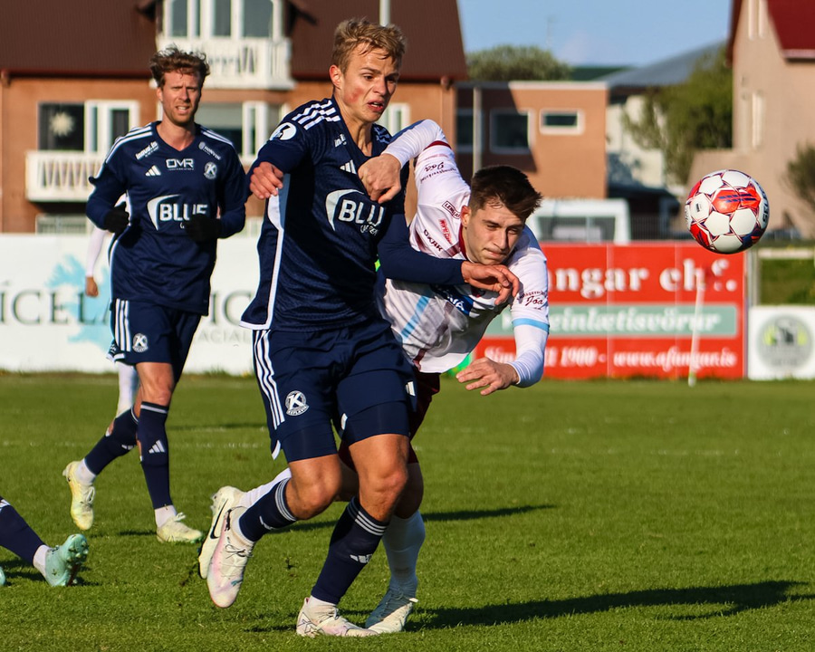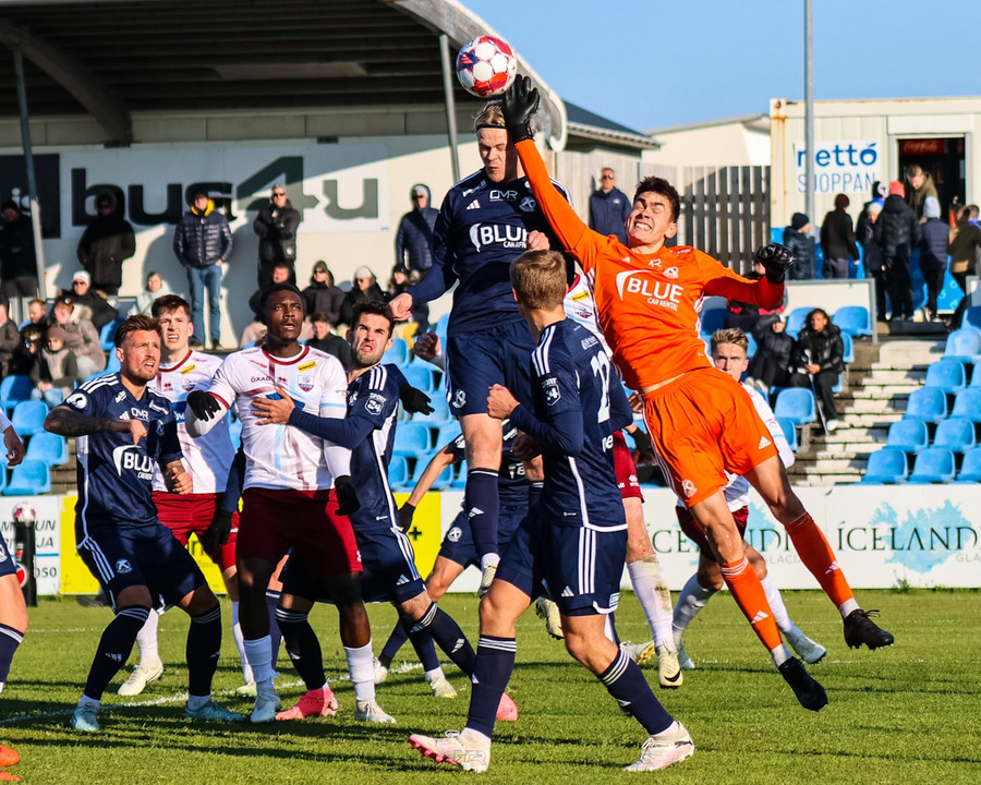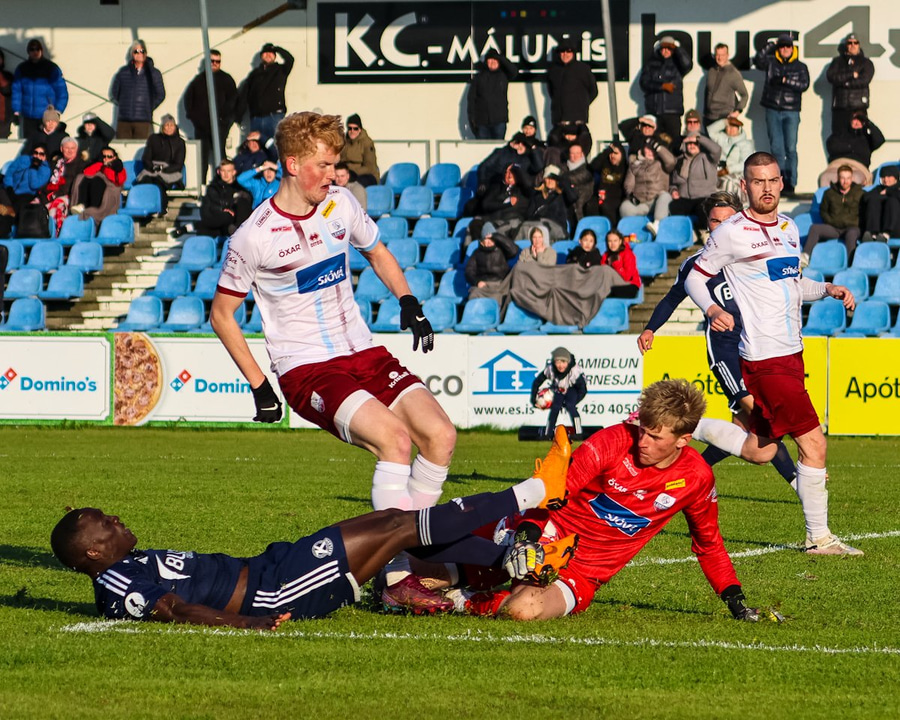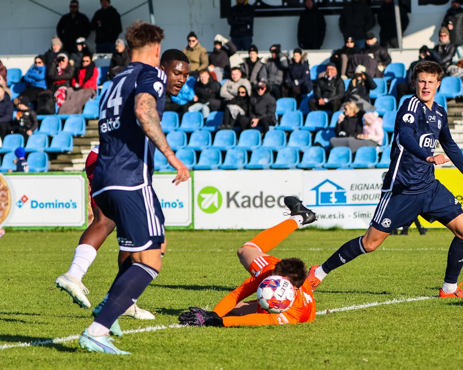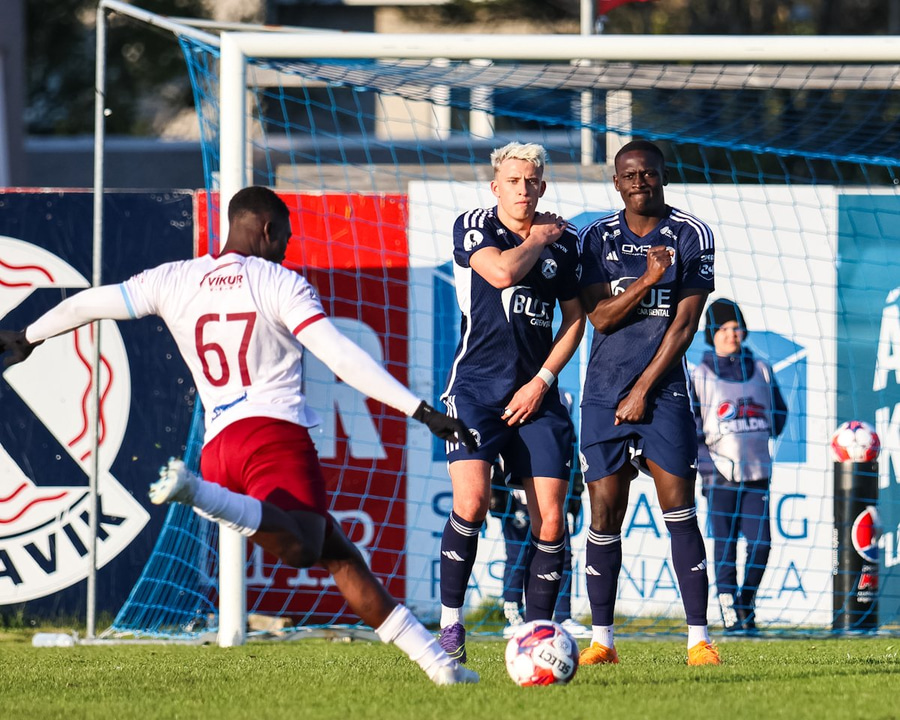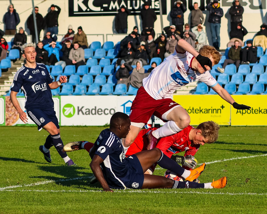 Boltinn dettur fyrir Óliver Andra sem á skot. Viktor ver en heldur ekki boltanum. Gestirnir hreinsa þó að lokum.