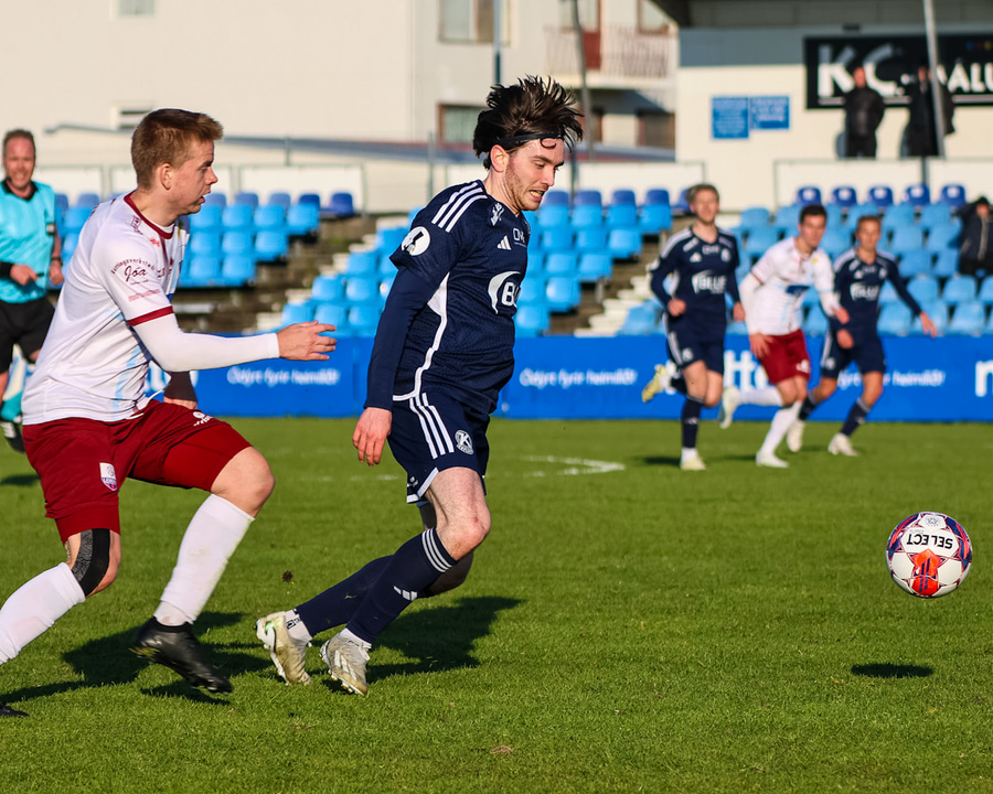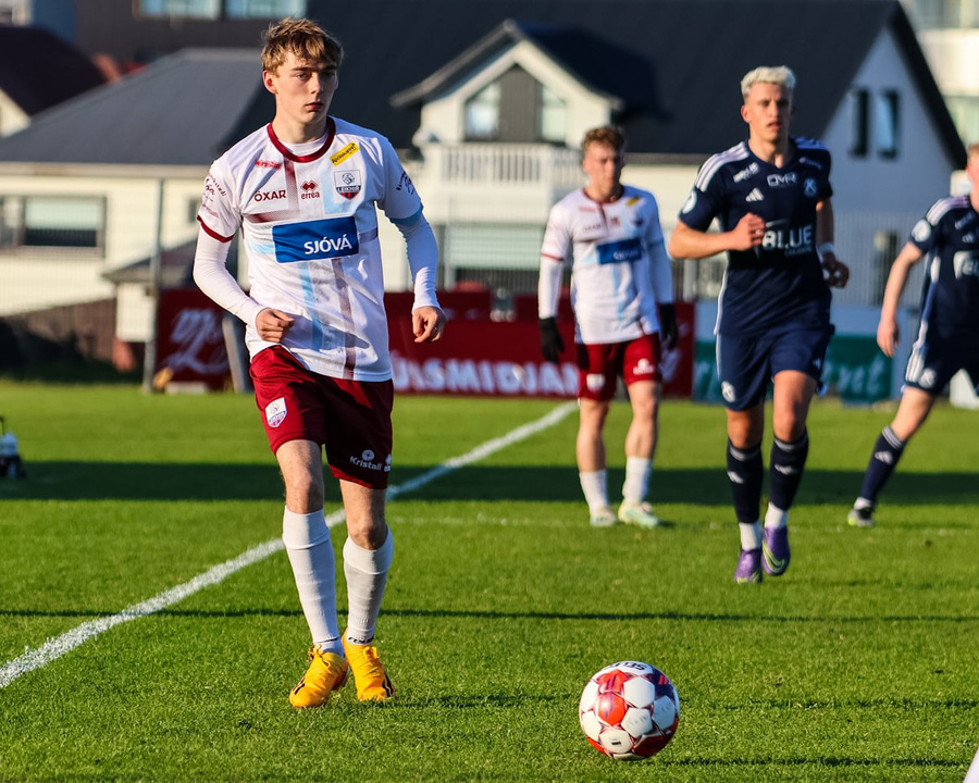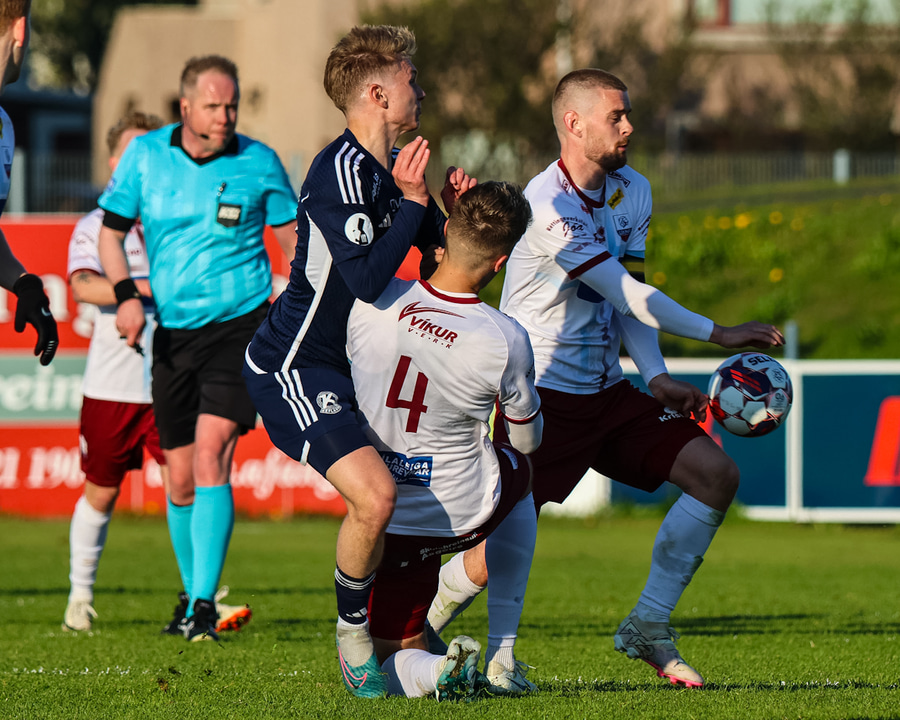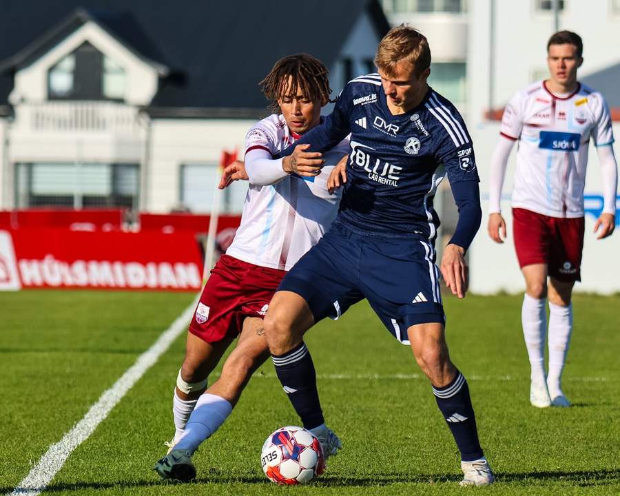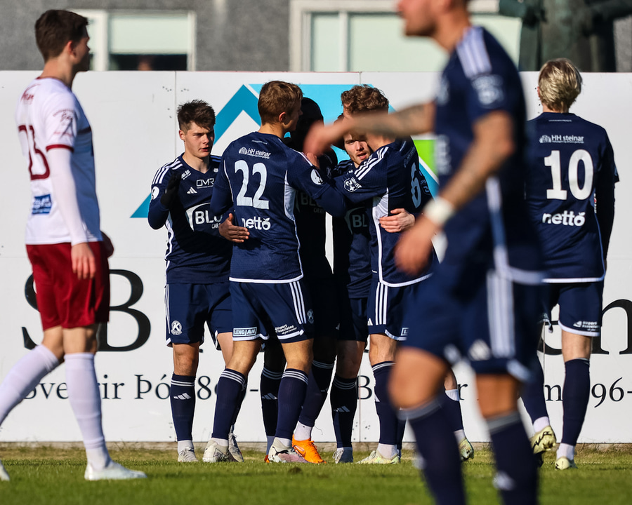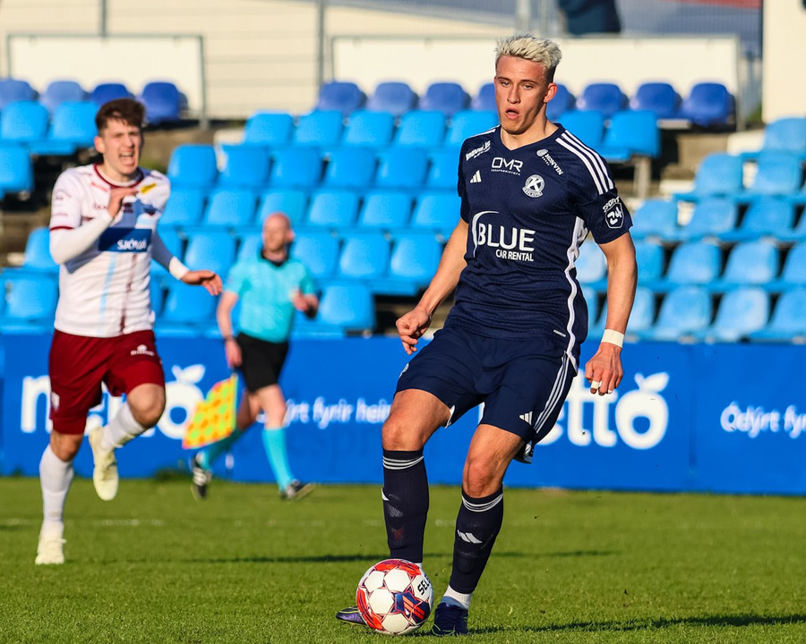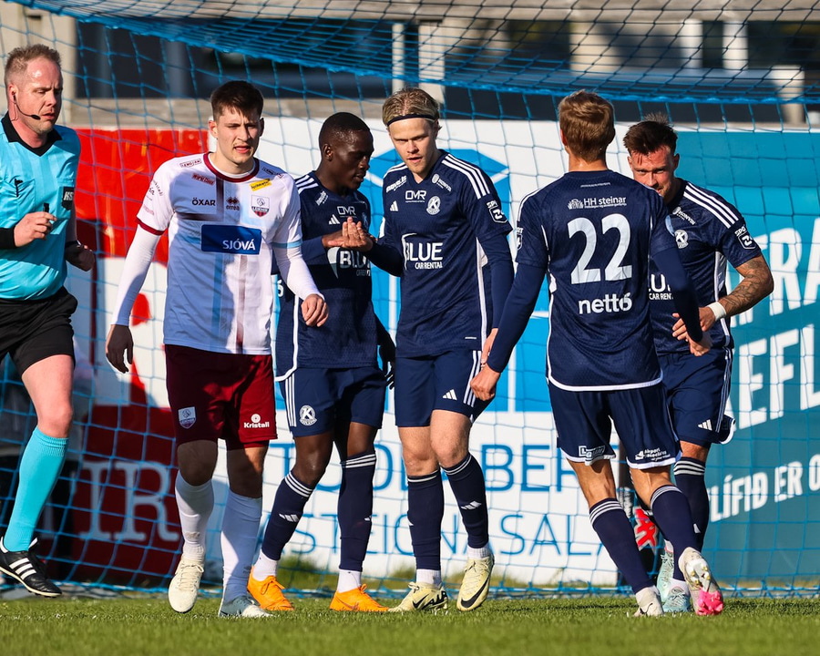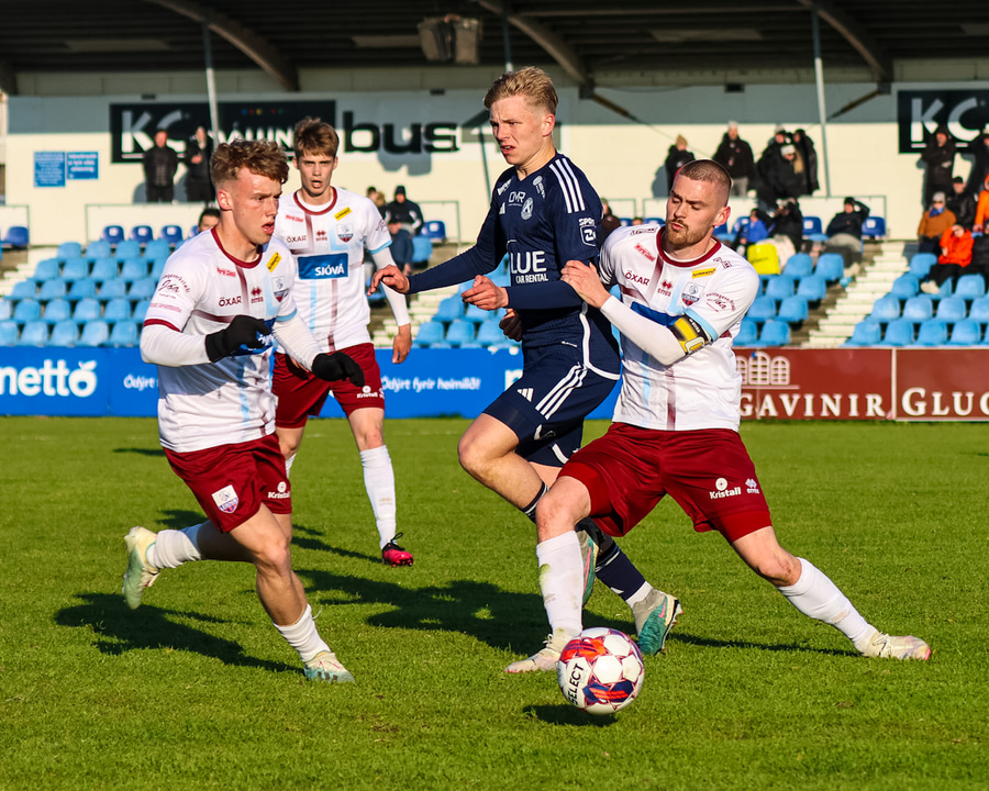 Boltinn dettur fyrir Óliver Andra sem á skot. Viktor ver en heldur ekki boltanum. Gestirnir hreinsa þó að lokum.