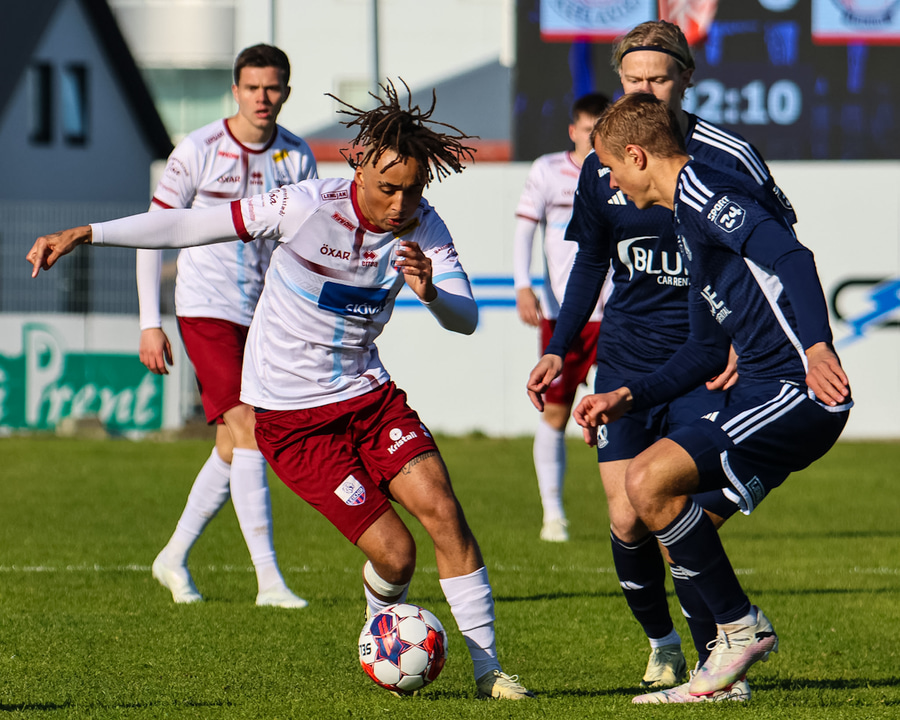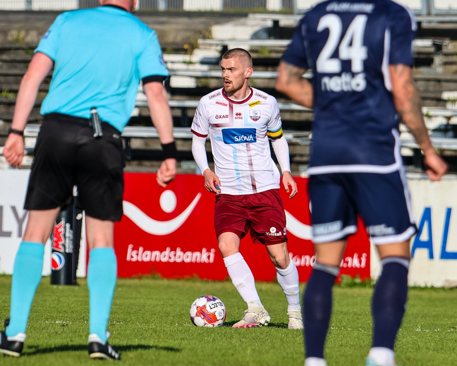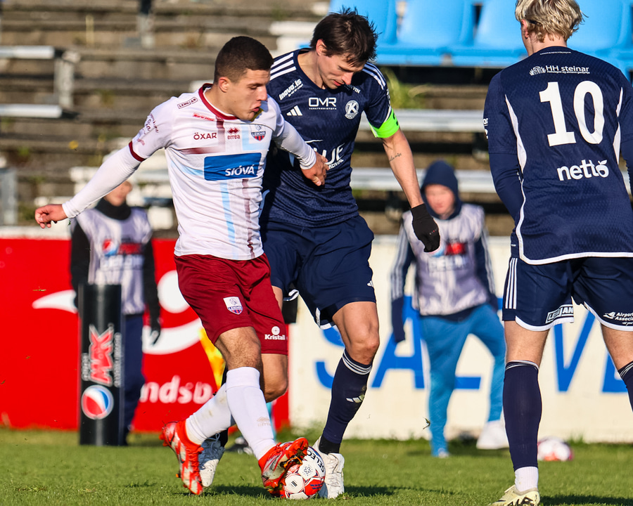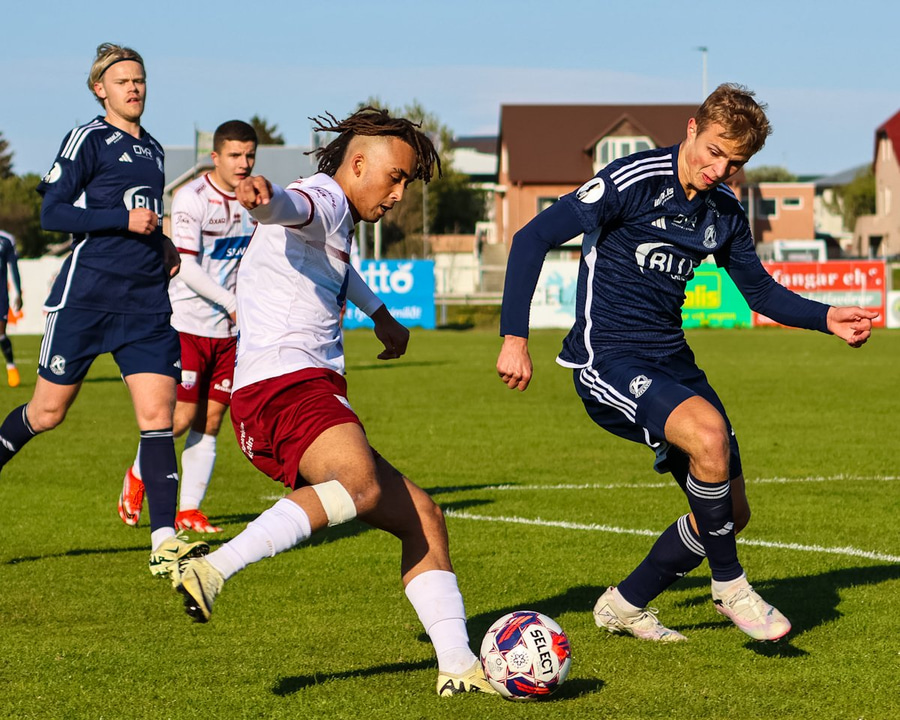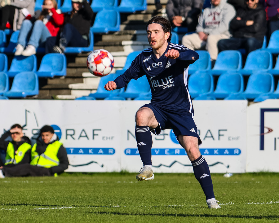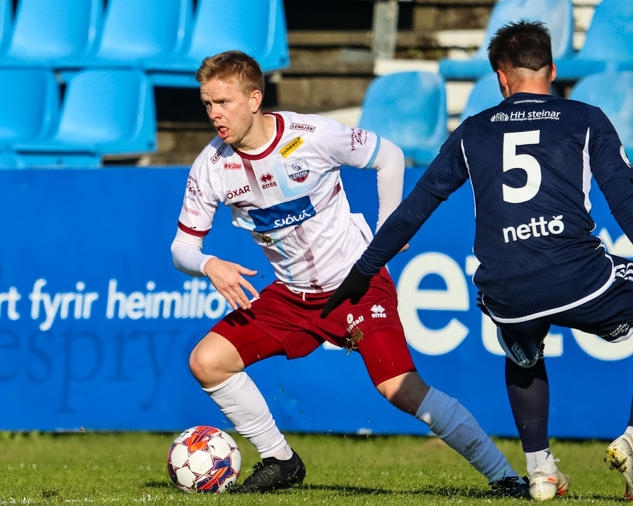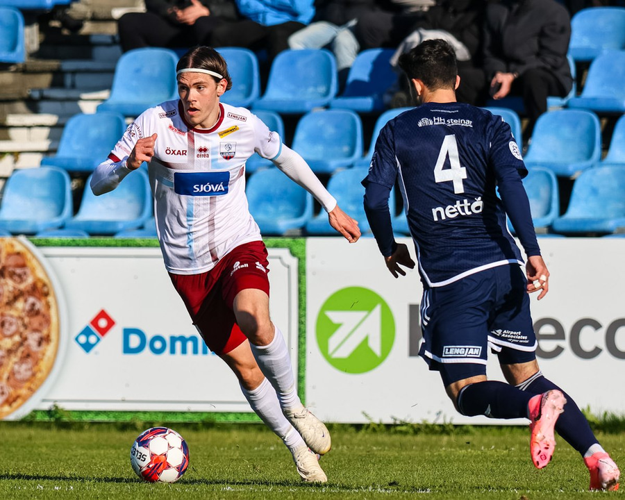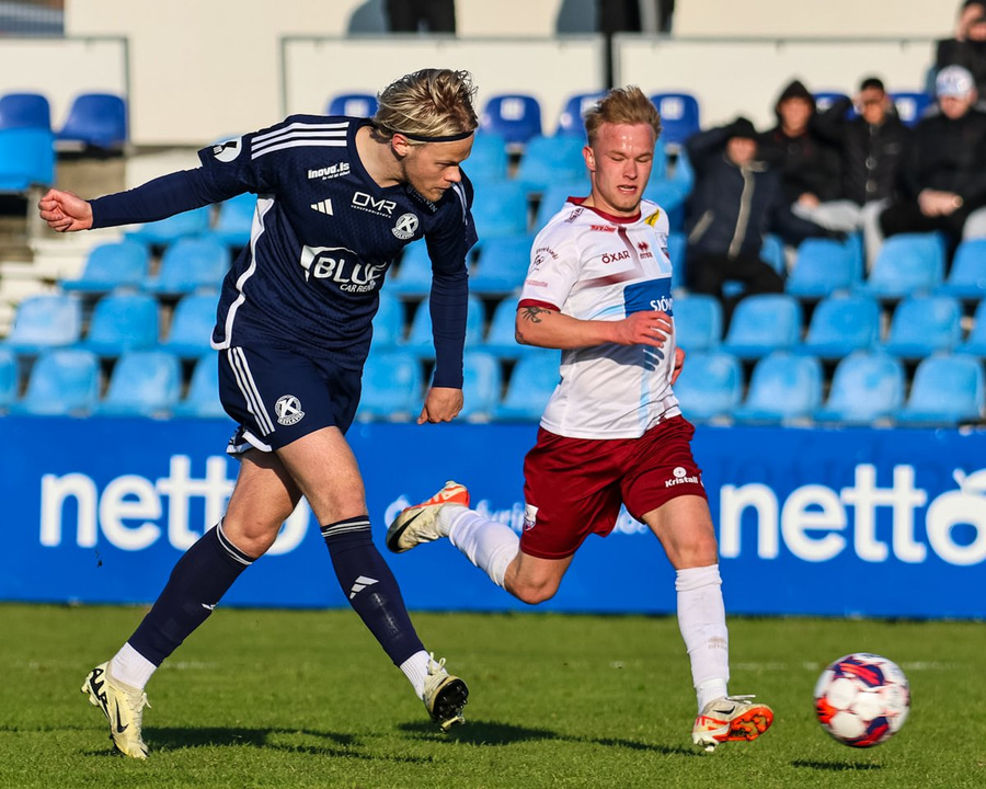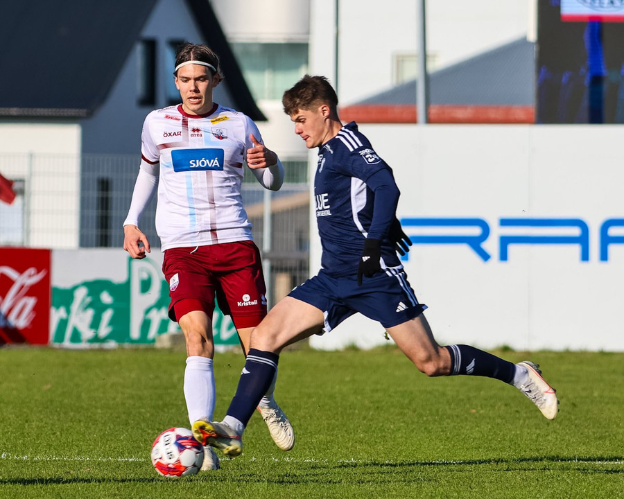 Boltinn dettur fyrir Óliver Andra sem á skot. Viktor ver en heldur ekki boltanum. Gestirnir hreinsa þó að lokum.