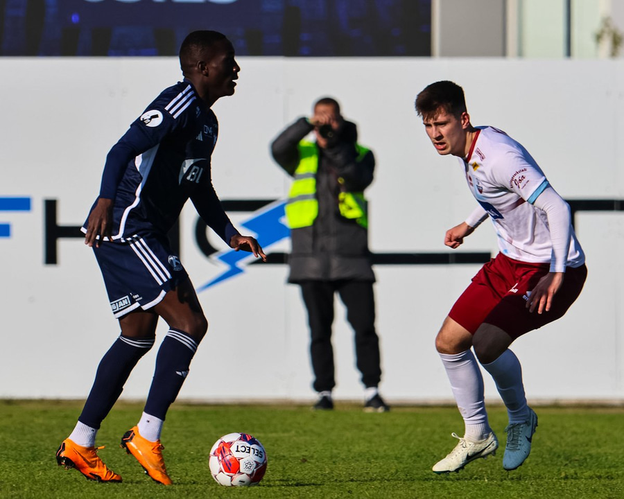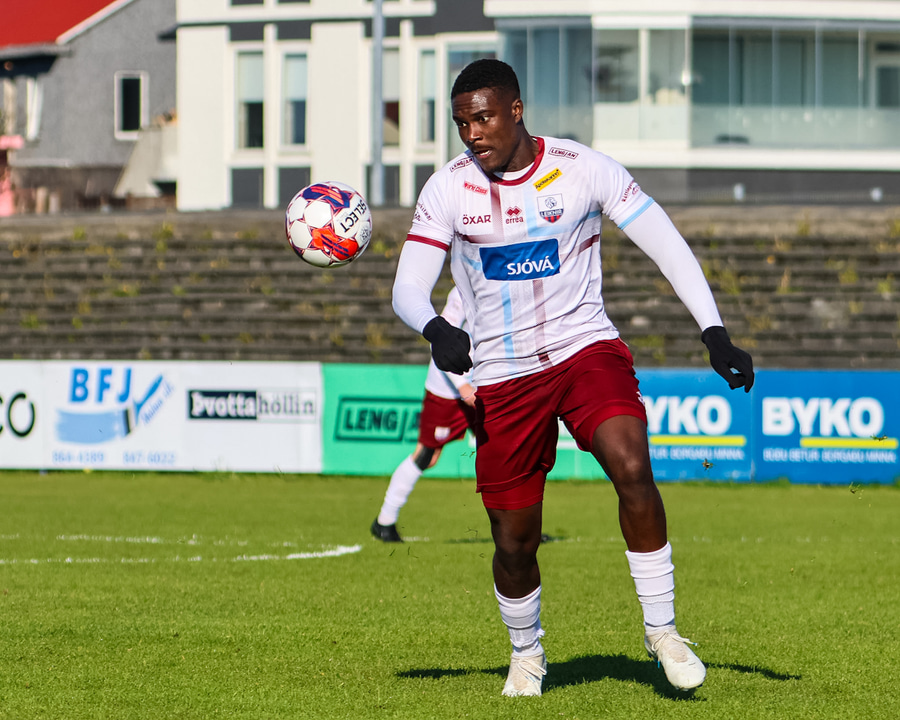 Mamadou í einn á einn stöðu með boltann vinstra megin keyrir af stað. Er nálægt því að missa boltann allavega í tvígang undir pressu frá varnarmanni. Nær þó að halda honum og setja hann fyrir markið þar sem boltinn rennur óáreittur fyrir fætur Ara sem getur ekki annað en skorað af stuttu færi