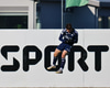 Spyrnan tekin innarlega en svífur yfir allt og alla og í markspyrnu.