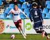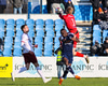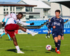 Skyndisókn Keflavík, Kári Sigfússon leikur inn völlinn og á skotið en Viktor blakar boltanum yfir slánna.