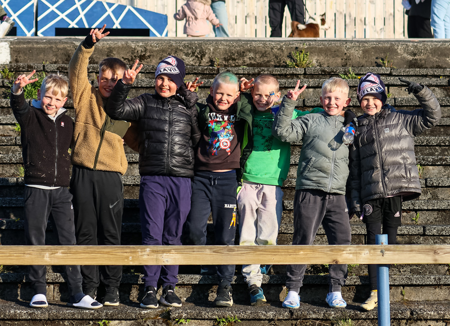 Allt orðið klárt hér og Arnar flautar leikinn á,. Heimamenn sparka okkur af stað og leika með vindi í átt að Sýslumannshúsinu.