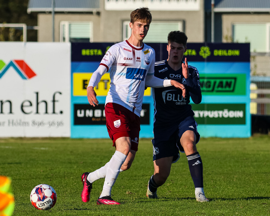 Gísli Alexander í dauðafæri í markteignum en Ásgeir Orri ver.